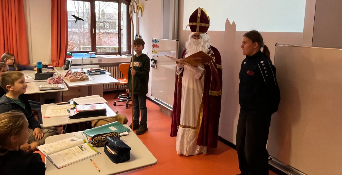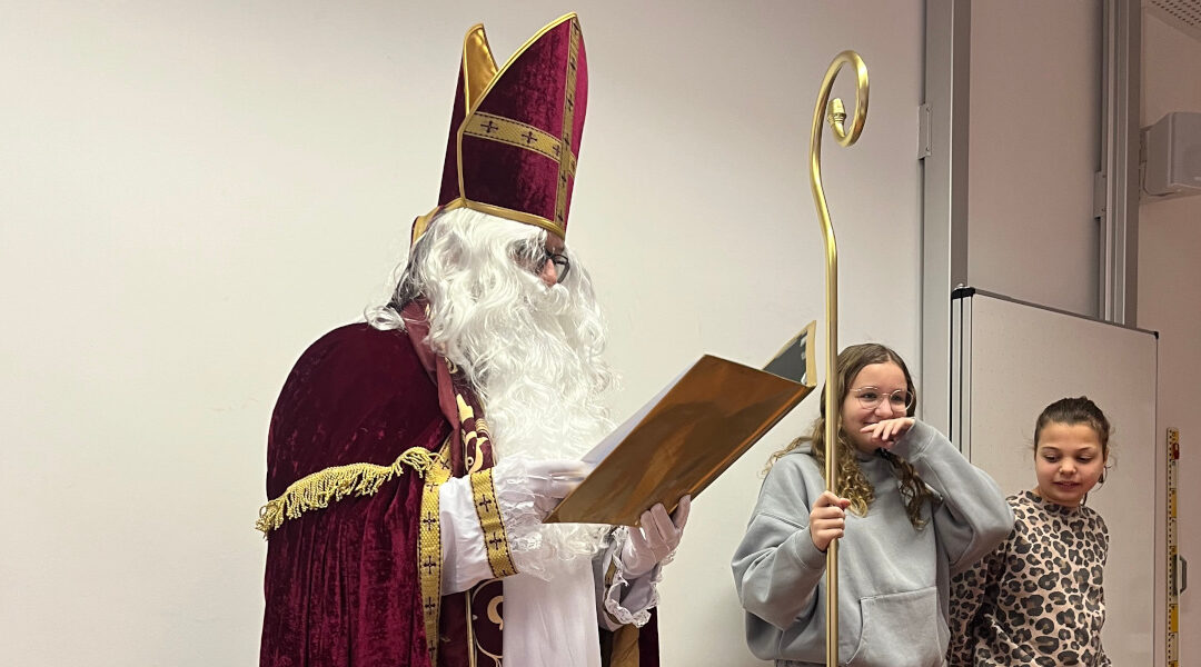 Auch der Nikolaus ließ es sich nicht nehmen, die fünften Klassen zu besuchen. Er überbrachte den Schülerinnen und Schülern viele lobende – aber auch mahnende – Worte. Als Geschenk erhielt jede und jeder einen vom Elternbeirat gesponserten Schokonikolaus.